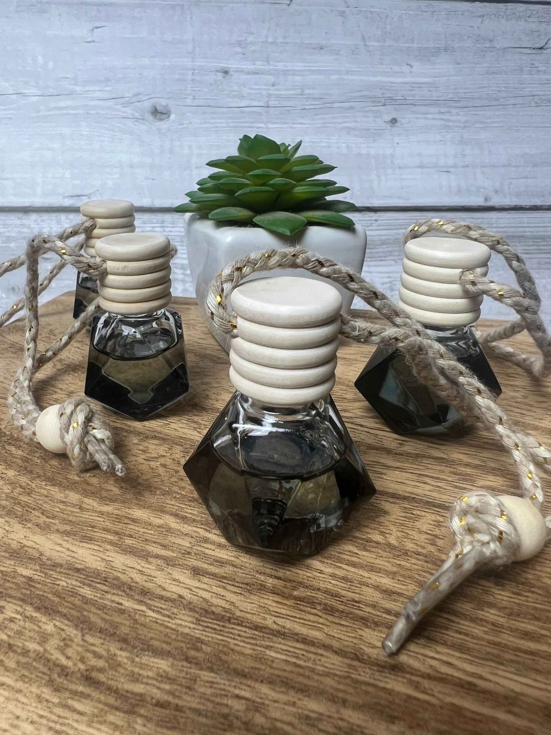 Introducing the Sophie Kate Car Freshie! Now, you can take all of your favorite candle smells with you everywhere you go! These adorable black glass pendant bottles hang from your rear-view mirror and contain the same essential oil/fragrance oil blend that we use to scent our candles and wax melts. It's the perfect car diffuser air freshener that comes in all of our signature and seasonal scents. Glass diamond pendant bottle with wooden lid measures 1.85 in. x 1.06 in., contains 0.5 oz. of fragrance, and will last up to 90 days!